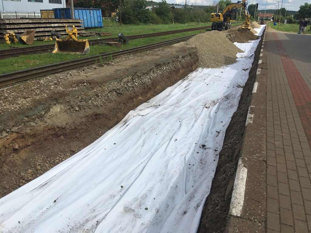Po vyjmutí kolejového roštu se odtěžilo kolejové lože a v části koleje, kde byla blátivá místa se zřídila nová konstrukční vrstva. V celém úseku byl doplněn čistý štěrk fr. 32/63 do kolejového lože. V kolejovém roštu byly vyměněny dřevěné pražce za betonové typu B91, na obou zhlavích ve výhybkách č.1 a 9 byly použity nové výhybkové pražce dřevěné. V koleji byly použity nové kolejnice tvaru 49 E1 délky 75 a 25m. Kolejnice byly následně svařeny a byla zřízena bezstyková kolej. Součástí opravy bylo i vyrovnání hrany sypaného nástupiště a úprava povrchu. Stávající dva přechody z betonových panelů byly demontovány a nahrazeny novými.