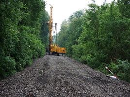 Oprava náspu na trati Veselí nad Moravou-Vrbovce v km 54,200 - 54,500