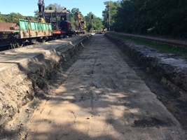 Po vyjmutí kolejového roštu v koleji č. 3 a 3a bylo odtěženo kolejové lože a zhutněny původní konstrukční vrstvy. V celém úseku bylo doplněno kolejové lože novým štěrkem fr. 32/63. Byla provedena montáž nového kolejového roštu v koleji č.3 z nových betonových pražců B03 a nových kolejnic tvaru 49 E1 v délkách 75m. Zrušená část koleje č.5 byla v délce 120m vytržena a ukončena kolejnicovým zarážedlem. Montáž kolejového roštu v ochranném poli před výhybkou č.5, v koleji č.7 a 3a byla provedena z vyzískaného materiálu a na koncích kolejí byla osazena kolejnicová zarážedla. Ve výhybce č. 5 a 9 byly vyměněny upevňovadla a ve výhybce č.5 proběhla výměna upevňovadel včetně dřevěných pražců. Následně byla provedena směrová a výšková úprava GPK v dotčených kolejích i stávajících výhybkách. V závěru stavby byly upraveny všechny plochy po vytržených kolejích, které byly zkráceny a doplněno a upraveno nástupiště a drážní stezky. Původní přechody byly nahrazeny novými přechodovými konstrukcemi PedeSTRAIL Před výpravní budovou a v přístupu k přechodům byla nově zpevněna plocha zámkovou dlažbou.