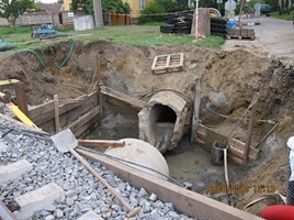 K úpravě se přistoupilo z důvodu nevyhovujícího stávajícího přejezdu. Absence chodníku a blízké umístění školy, díky které přes přejezd denně prošlo velké množství chodců, zvláště dětí, z něj činili velmi nebezpečný přejezd jak pro chodce, tak i pro řidiče automobilů. Zároveň již provozu neodpovídala skladba přejezdové konstrukce, která byla tvořena asfaltovou vrstvou. Trubní propust v těsném sousedství také dosluhovala a otevřené části obtěžovaly obyvatele nepříjemným zápachem i vzhledem. Při rekonstrukci byla stávající kanalizace po obou stranách železniční tratě propojena železobetonovými rourami průměru 1000mm a nad nimi byl zřízen chodník pro pěší, který navazoval na stávající chodník, jež doposud končil po obou stranách před přejezdem. Tímto bylo docíleno převedení chodců z komunikace a zvýšení bezpečnosti provozu. Nově bylo vybudováno odvodnění drážních příkopů a přilehlé komunikace včetně horské vpusti pro zachycení dešťové vody přicházející ze zemědělských ploch v okolí. Nová přejezdová konstrukce byla vybudovaná z celopryžových panelů Strail. Rekonstrukce kanalizace a chodníku byla financována z rozpočtu města Vracov.